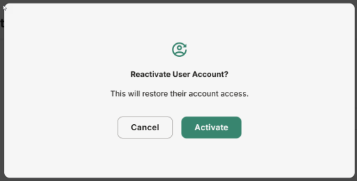 - Deactivate/Reactivate user controls: Instantly revoke or restore login access from the User Info page.