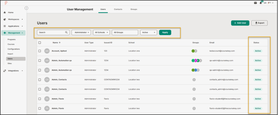 - Status visibility: Clear Active/Deactivated labels plus a new Status column and filtering in the user table.
