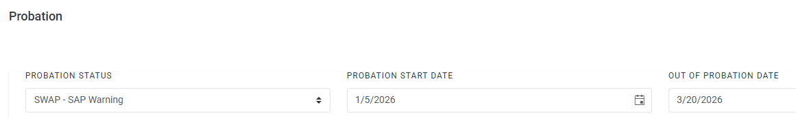 Automatic probation status updates tied to unmet SAP results