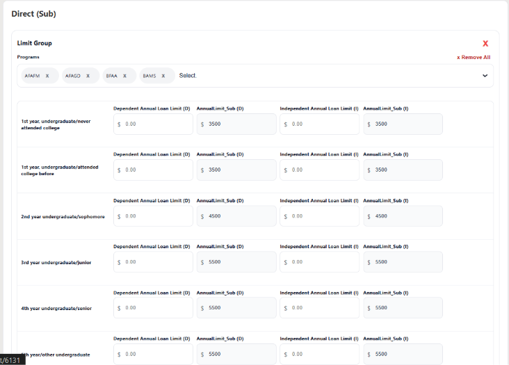 at the PLUS, SUB and UNSUB loan level. This is the visual indication that allows the user to configure the amount of loans that a student in specific program/s can receive. The new “Configure Fund Type” attribute lets schools configure annual loan limits by Program + Academic Level, with dependent/independent values validated against max caps.