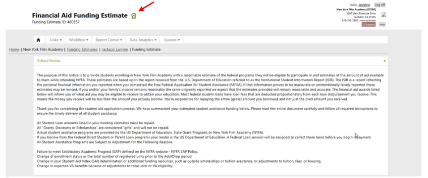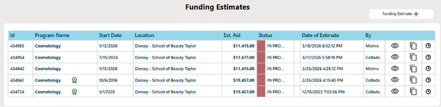 The OFA-driven Pell eligibility check functions correctly when a brand-new funding estimate is created. It will also execute when a funding estimate is cloned; however, it does not currently account for prior disbursement activity.