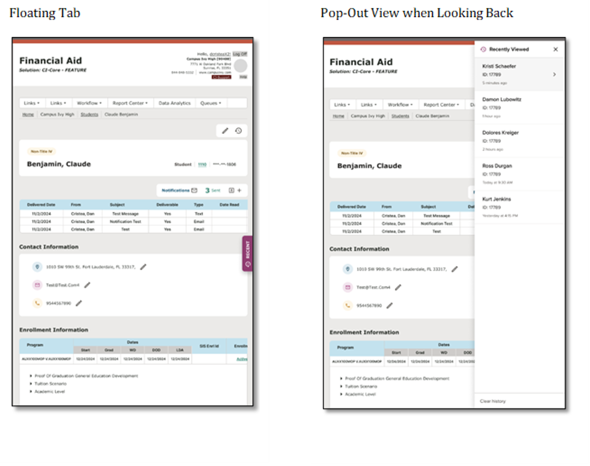 - Student Record “Recent” Quick Access Dropdown